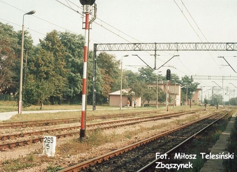 Zachodnia głowica rozjazdowa; wyjazd na Chełm. Widoczna nieczynna nastawnia wykonawcza. Widoczne 7 z 10 semaforów wyjazdowych. Po prawej tory normalne. Widok w kierunku Chełma. 268,9 km/2,6 km.