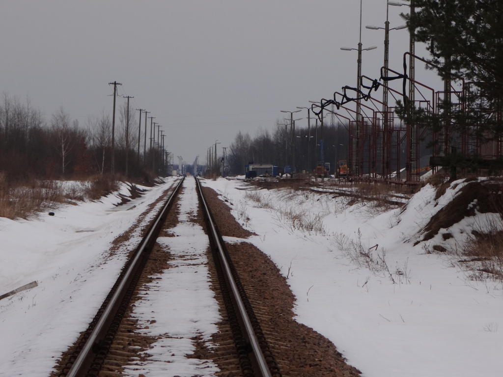 Łącznica szerokotorowa Dorohusk - Damazy. Po prawej baza paliw, instalacja do napełniania i opróżniania cystern kolejowych. Widok w kierunku Kowla. 267,7 km/3,8 km.