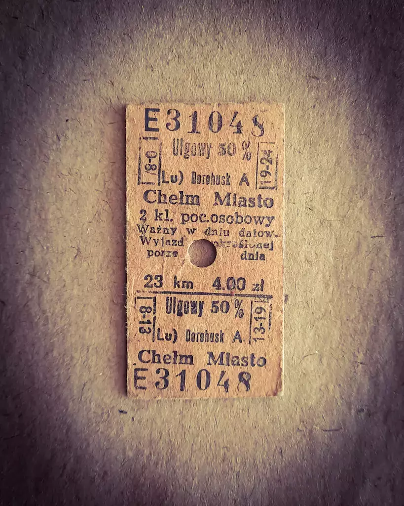 Bilet kartonikowy wydany na stacji Dorohusk.