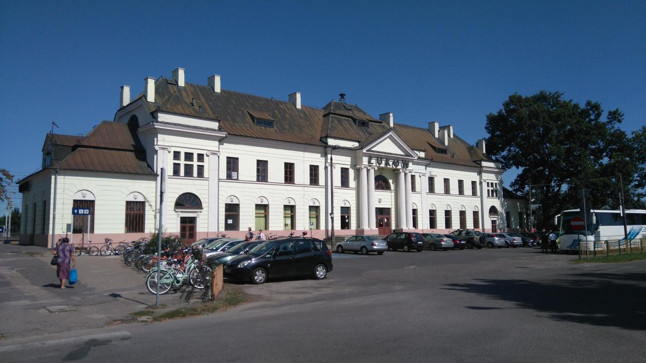 Budynek dworca od strony podjazdu. Widok w kierunku północnym; w lewo Dęblin, Pilawa, Siedlce/Warszawa, w prawo Lublin, Biała Podlaska.