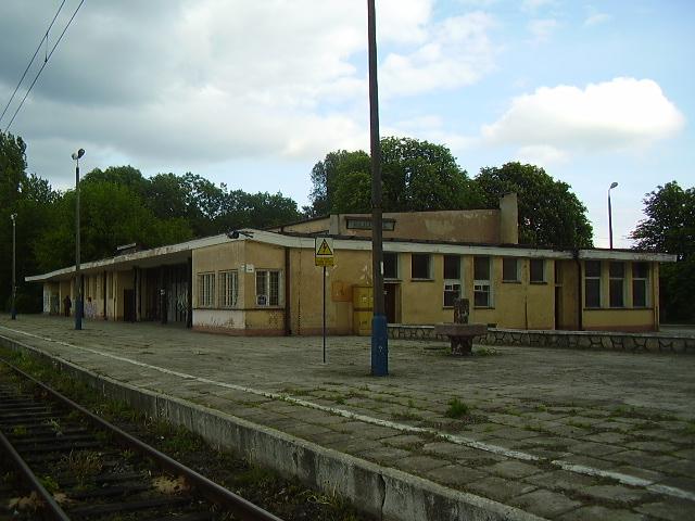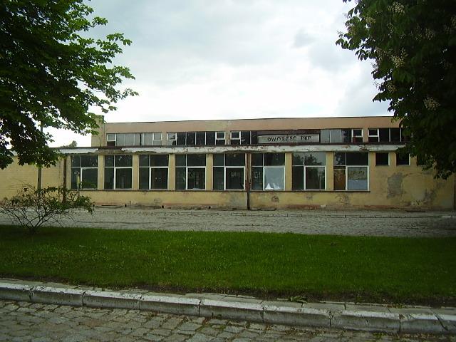 Dworzec od strony miasta. Niestety centrum znajduje się dokładnie po drugiej stronie torów, natomiast dworzec stoi w dzielnicy Morawinek. Ten fakt oraz zanik potoków pasażerskich spowodował upadek budynku i zamknięcie 3/4 powierzchni dworca w obawie przed dewastacją.