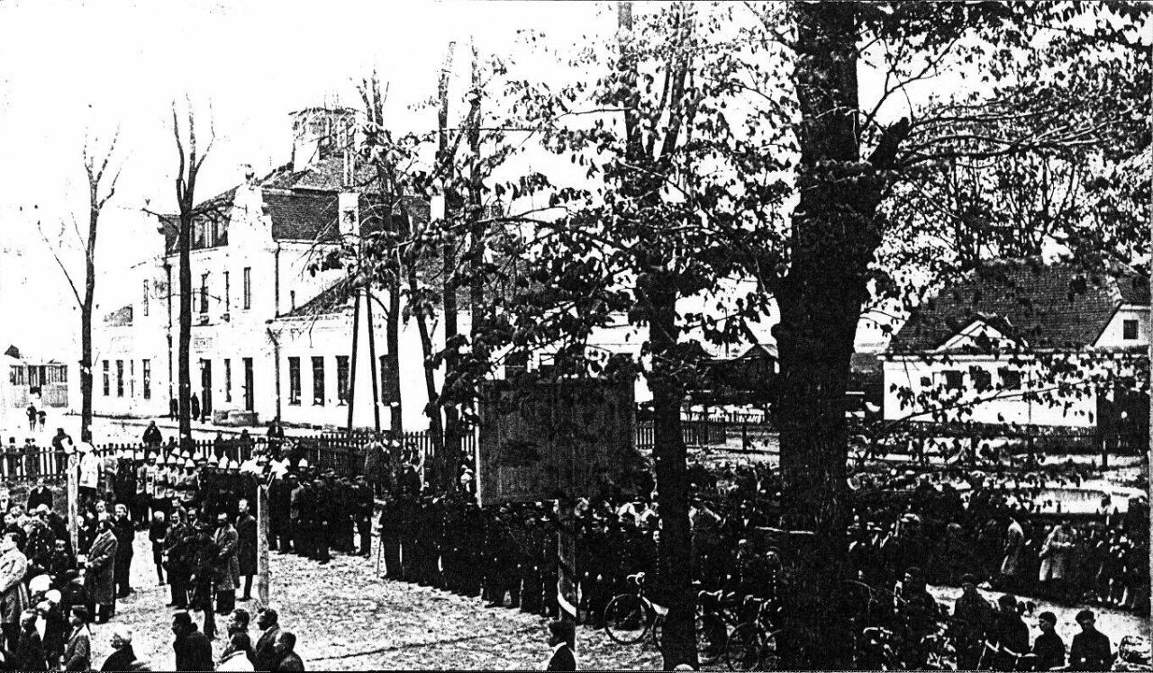 Widać dworzec, który będzie zniszczony pod koniec wojny. I nieznana mi uroczystość.