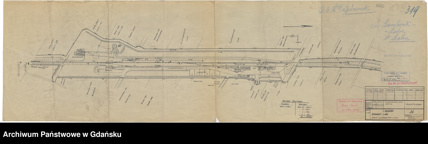 W Archiwum Państwowym w Gdańsku są plany z 1915, 1924 i z czasów kolei III Rzeszy, ten ostatni z adnotacjami w j. polskim, a więc plan zgodny jest zapewne z tym, jak stacja wyglądała w pierwszych latach po 1945. Parowozownia była wówczas czynna. Poniżej linki do tych trzech planów. Oryginały (w dużym formacie) dostępne są w gdańskim archiwum. Można np. umówić się na kwerendę i wykonać fotografie, ewentualnie - choć nie wiem czy w Gdańsku jest to praktykowane dla tego typu planów - zapłacić za skan w oryginalnym rozmiarze (a może tylko większym niż publikacja on-line) i otrzymać go drogą elektroniczną.
