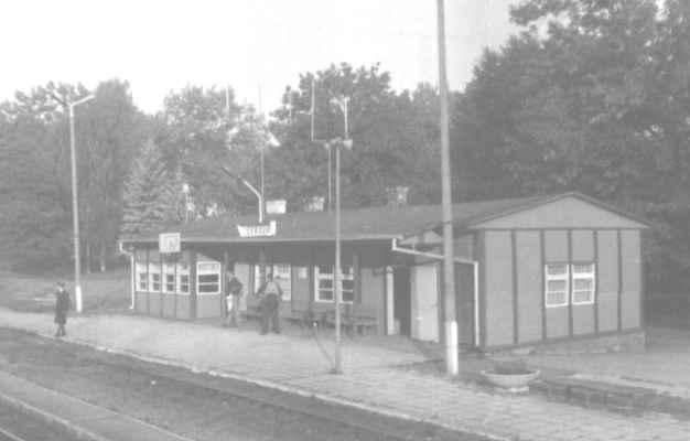 Skan zdjęcia z Nowych Sygnałów nr 30/98 ilustrującego nieistniejący obecnie dworzec w Zawadzie. Mieścił on kiedyś także nastawnię dysponującą. Szkoda tego budyneczku, niegdyś pełnego życia. Widok od strony wjazdu ze Zwierzyńca, w kierunku północno-wschodnim.