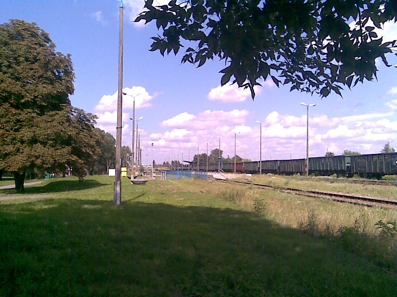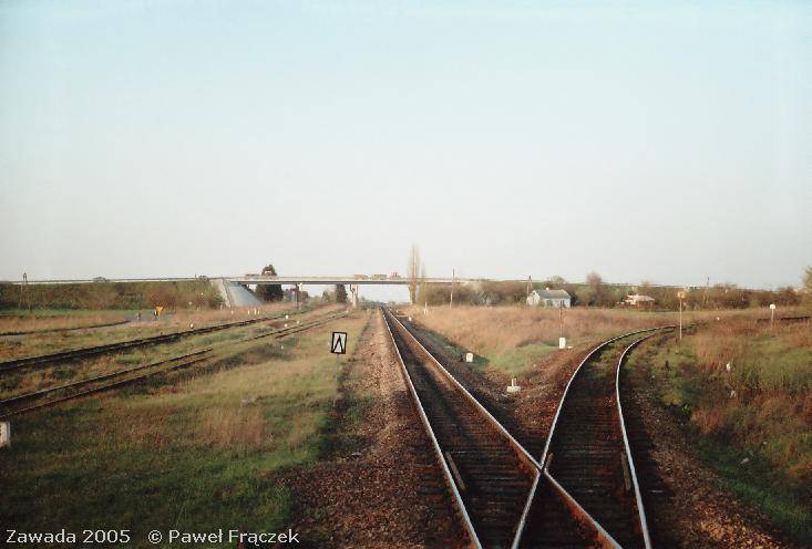 Zawada. Pamiętam jak na tym torze kiedyś zatrzymywał się pociąg z Lublina do Zamościa i z powrotem. Widok od strony Zwierzyńca. Z lewej znajdował się budynek dworca. Z prawej nowy peron wyspowy. Widok w kierunku północno-wschodnim: Zamość, Rejowiec.