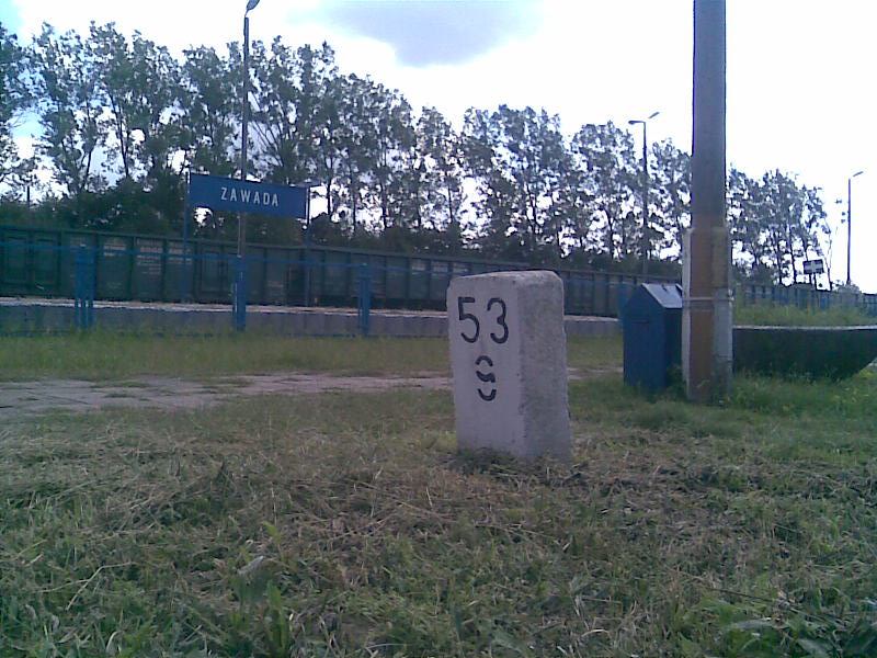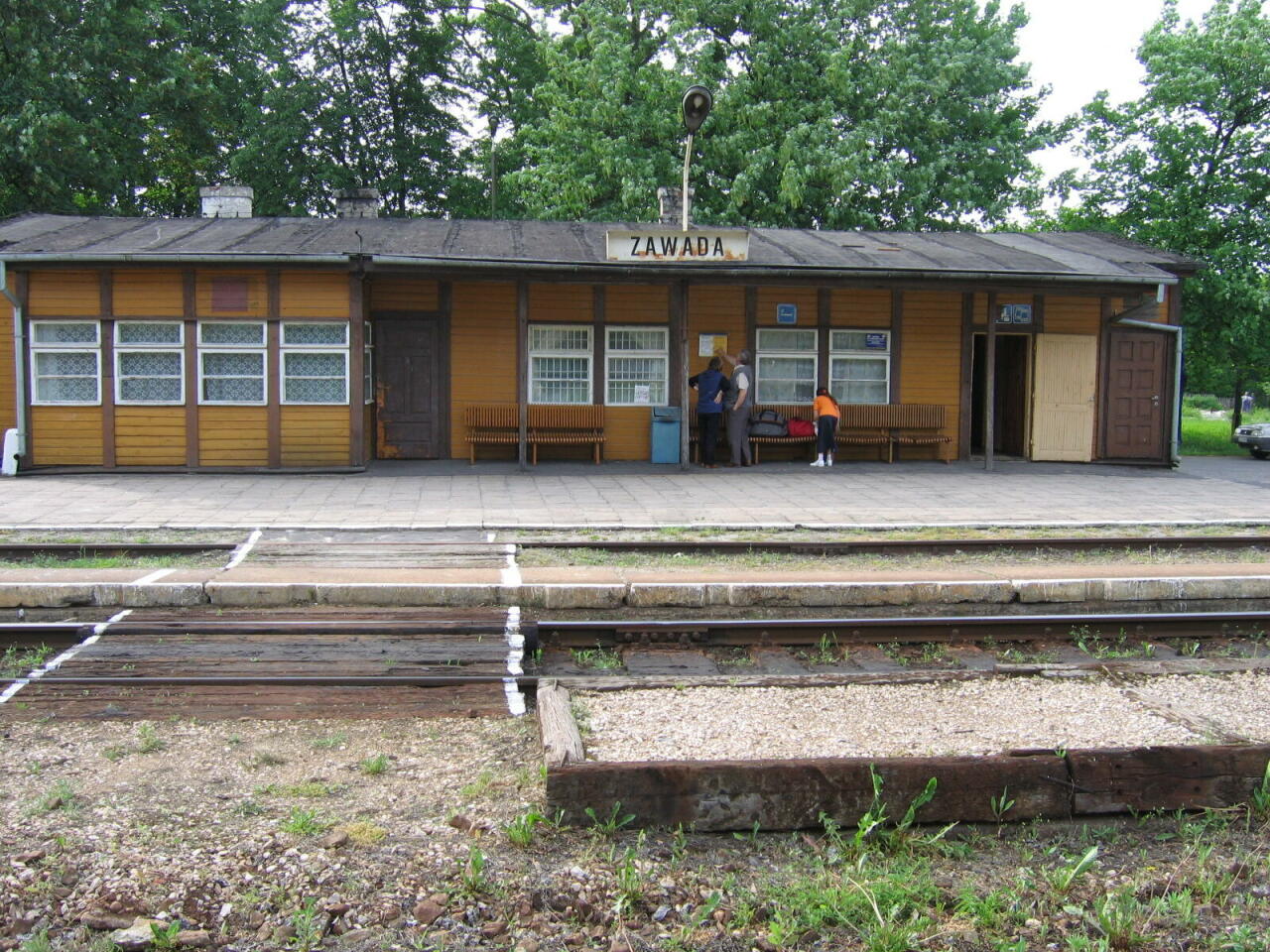 Zawada. Kiedyś budynek stacji znajdował się prawie na odległości 53.9 Km od Rejowca. Niestety, już go nie zobaczymy. W lewo Rejowiec, Zamość, w prawo Zwierzyniec.