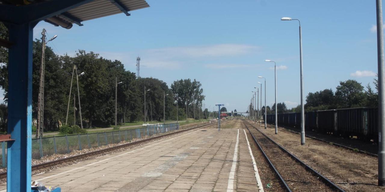 Widok na perony od strony wjazdu ze Zwierzyńca. Z lewej budynek dworca mieszczący nastawnię dysponującą. Z prawej trwa likwidacja toru 2, w którego miejscu zbudowany zostanie nowy peron wyspowy na stacji. Kierunek północno-wschodni.