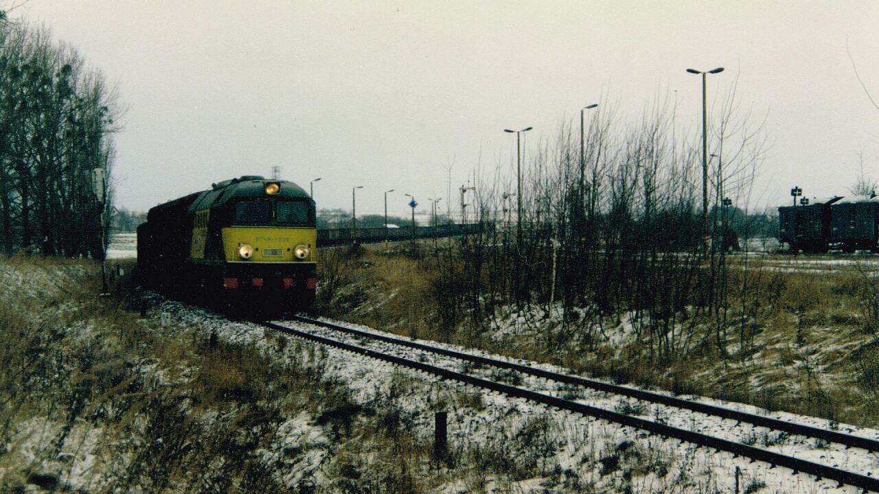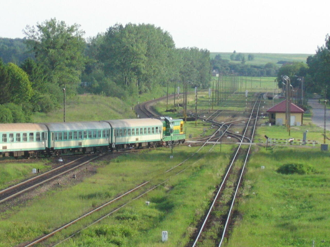 Rozłączanie dalekobieżnego składaka na stacji w Zawadzie - prawdopodobnie przyjechał tu skład z Warszawy do Hrubieszowa (z przodu) i Bełżca (z tyłu). Widok w kierunku zachodnim (Zwierzyniec).