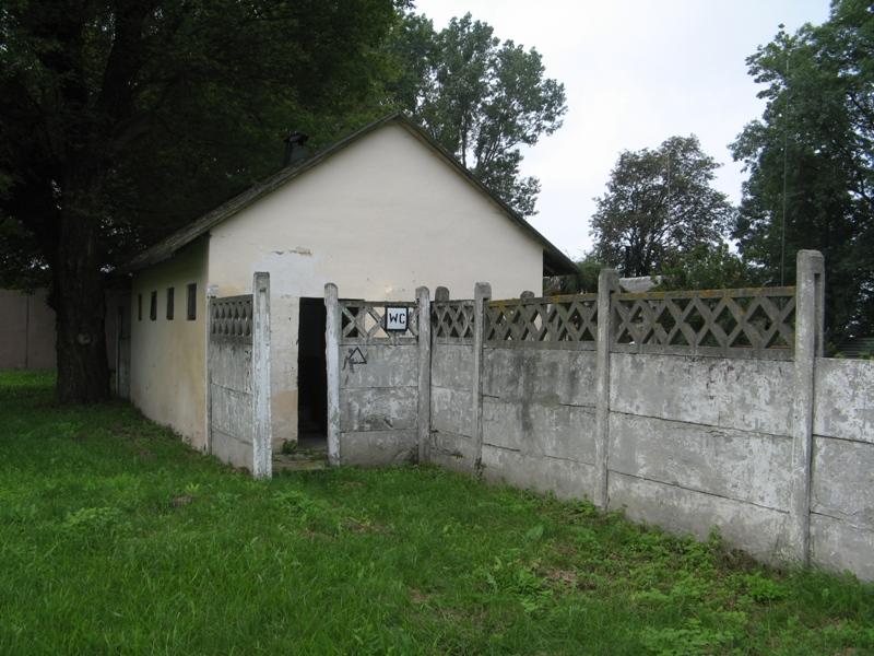 Budynek stacji WC na stacji Zawada. Wewnątrz luksusów nie ma, ale skorzystać się jeszcze da.