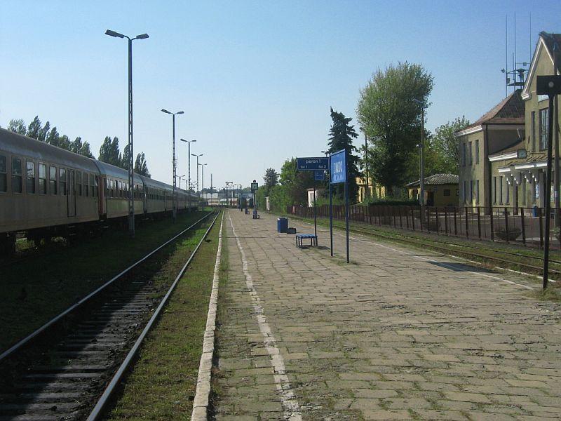 Fragment peronu i budynek dworca w kierunku północno-zachodnim.