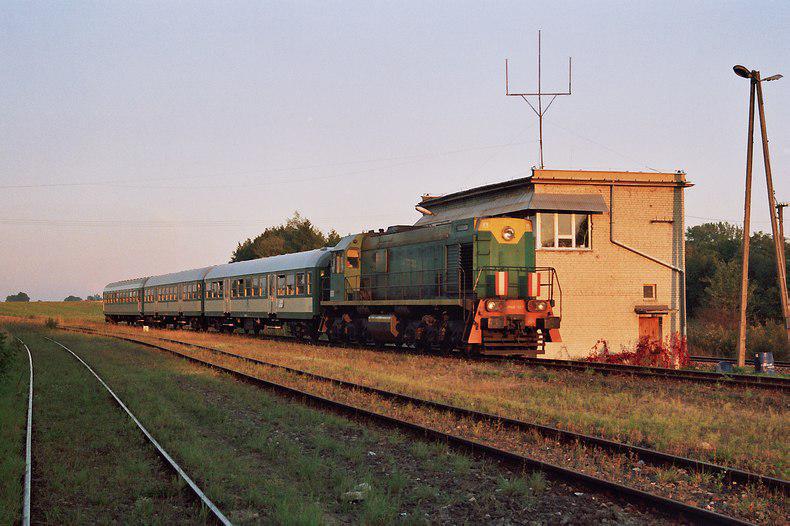 Archiwalna scenka na stacji Werbkowice - Tamara z porannym pociągiem do Zamościa mija nastawnię dysponującą stojącą na wschodniej głowicy stacyjnej. Dziś tego widoku już tu nie ujrzymy - budynek zburzono w kilka lat po wykonaniu zdjęcia, w kilka miesięcy zaś zawieszono ruch pasażerski. Widok w kierunku wschodnim (Hrubieszów). Zdjęcie zamieszczono dzięki uprzejmości Bartosza Sojdy.