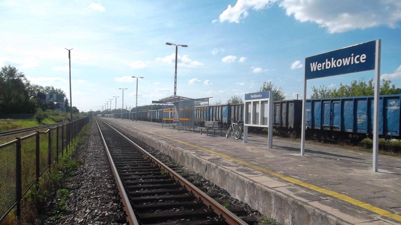 Nowe elementy małej architektury na peronie w Werbkowicach. Pojawiły się m.in. nowe ławki, tablice i wiata, której nigdy wcześniej tu nie było. Trochę żal klimatycznych, drewnianych ławek pomalowanych na pomarańczowo oraz kubełków z napisem "Tu wrzuć. Dziękuję!". Widok w kierunku zachodnim (Zamość).