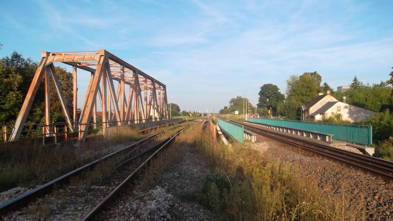 Mosty kolejowe nad Huczwą; od prawej: tor LHS, współczesny przebieg toru szlakowego z Zamościa, tor wyciągowy z cukrowni i elewatora. Widok w kierunku wschodnim (peron, punkt zdawczo-odbiorczy).
