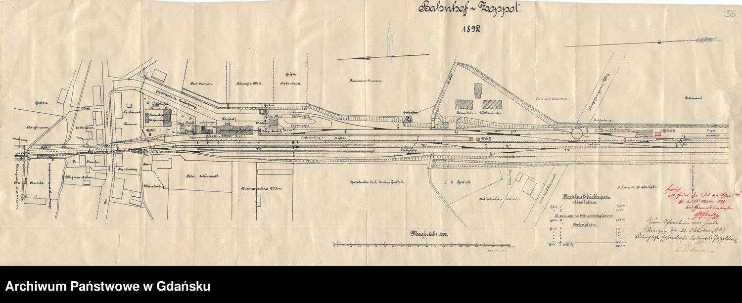 W danych tabelarycznych warto więc zmienić informację w podpunkcie "budynki obsługi taboru:", z "nie ma i nie było", na "była 1-stanowiskowa parowozownia, obecnie nie istnieje". Z innych planów stacji Sopot z APG wynika, że budynek parowozowni rozebrano w trakcie późniejszej przebudowy stacji i układu torowego, ponieważ nie ma go już na planie z 1908/09 r.