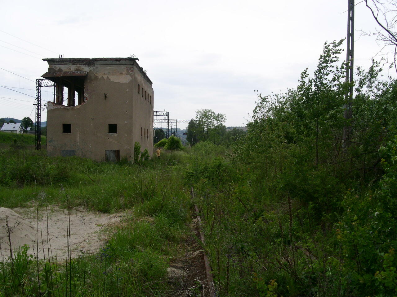 Zrujnowana nastawnia od strony Nowego Sącza.