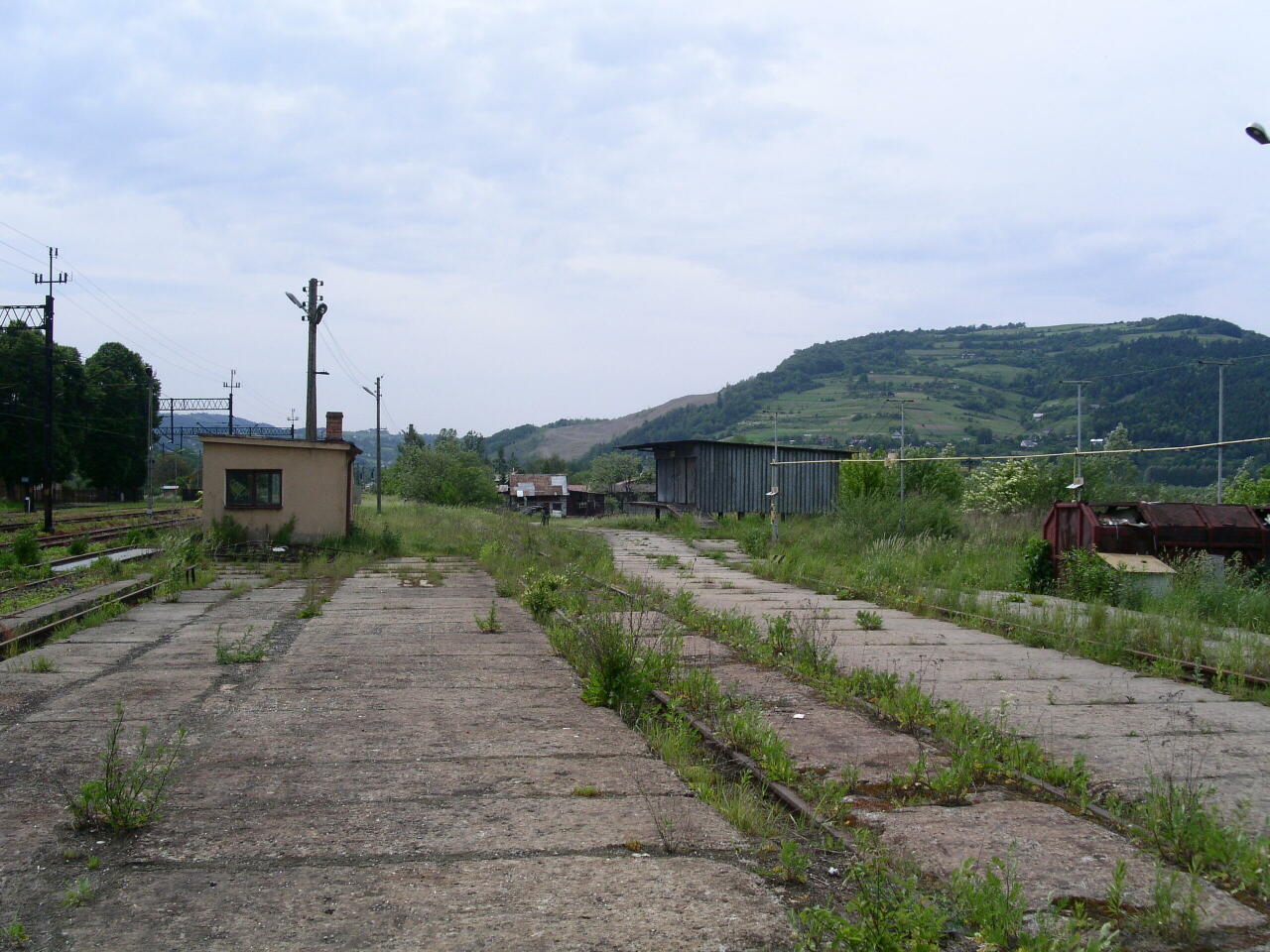 Stara rampa ładunkowa po południowej stronie stacji. Widok w stronę Nowego Sącza.