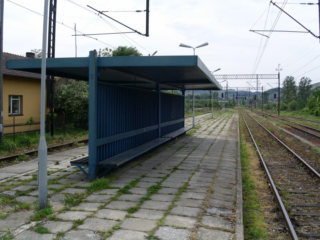 Widok mniej więcej ze środka peronu w stronę Nowego Sącza.