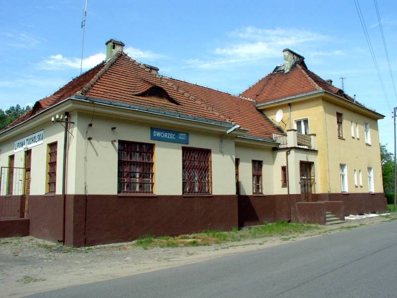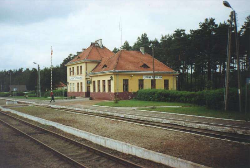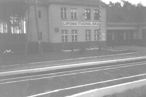 Lipowa Tucholska - widok na budynek stacyjny od strony wsi.