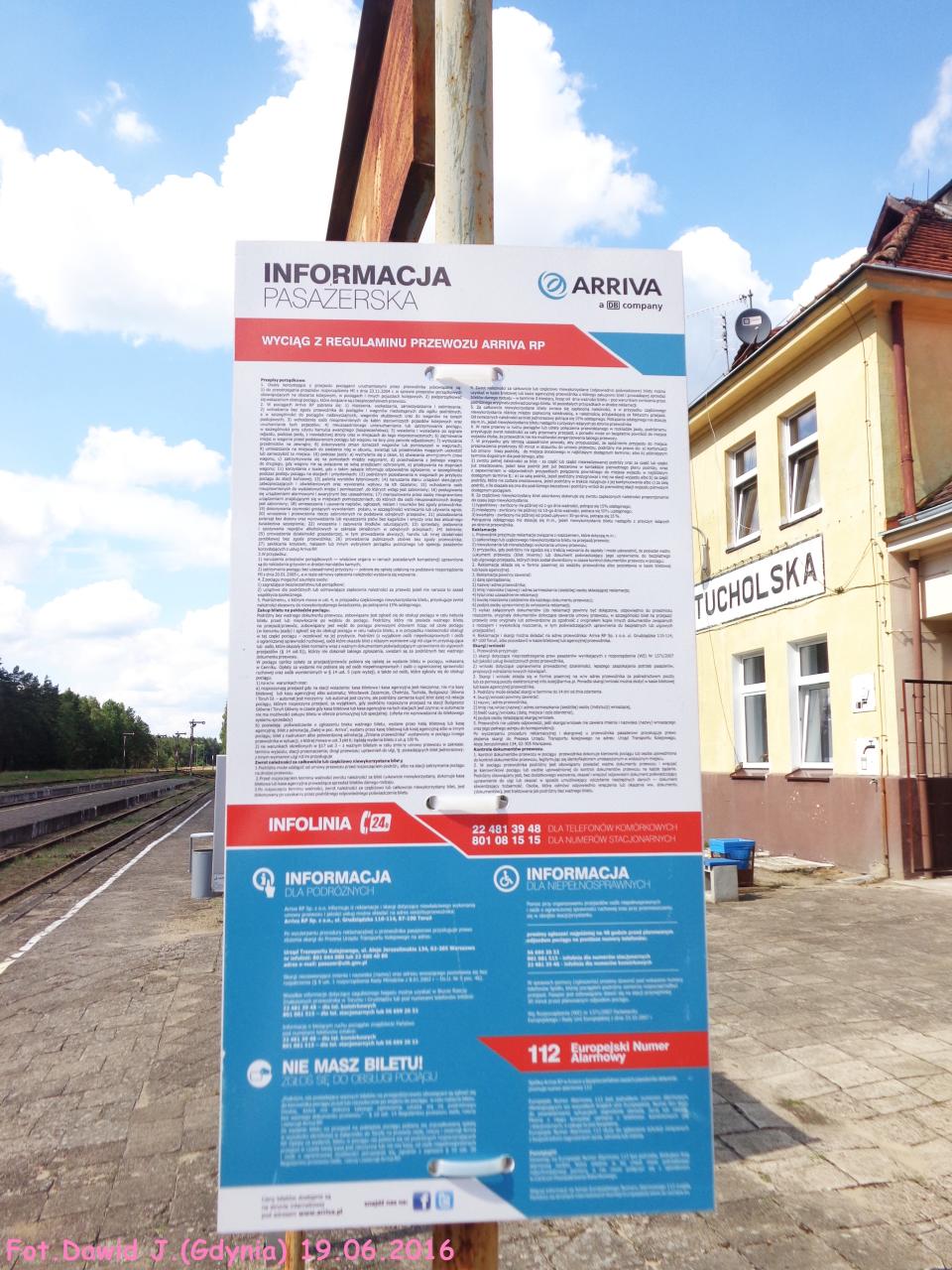 Tablica z informacjami od Arrivy. Widok w kierunku Bąka/Gdyni Głównej i Szlachty.