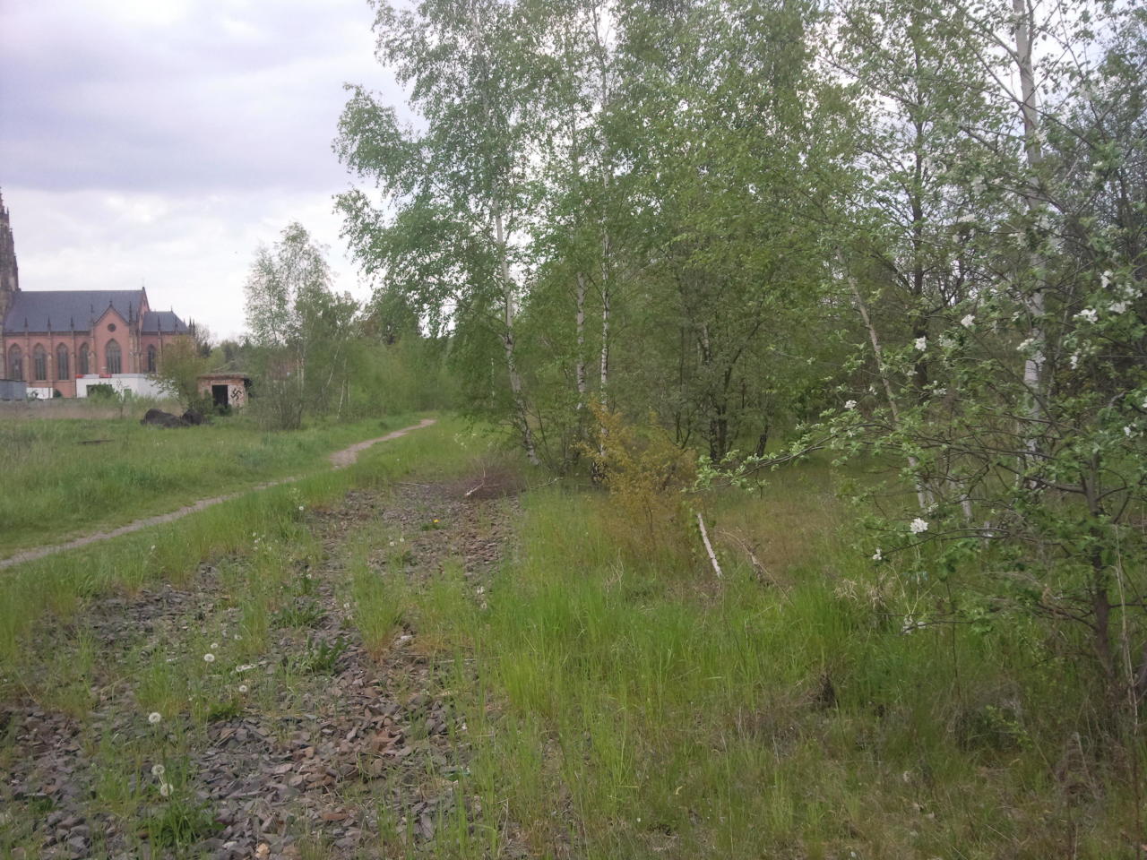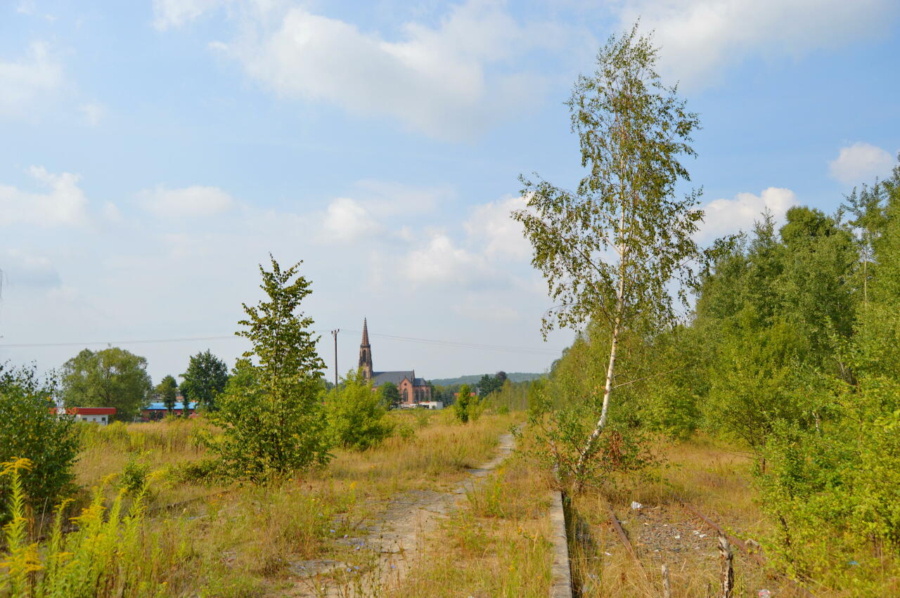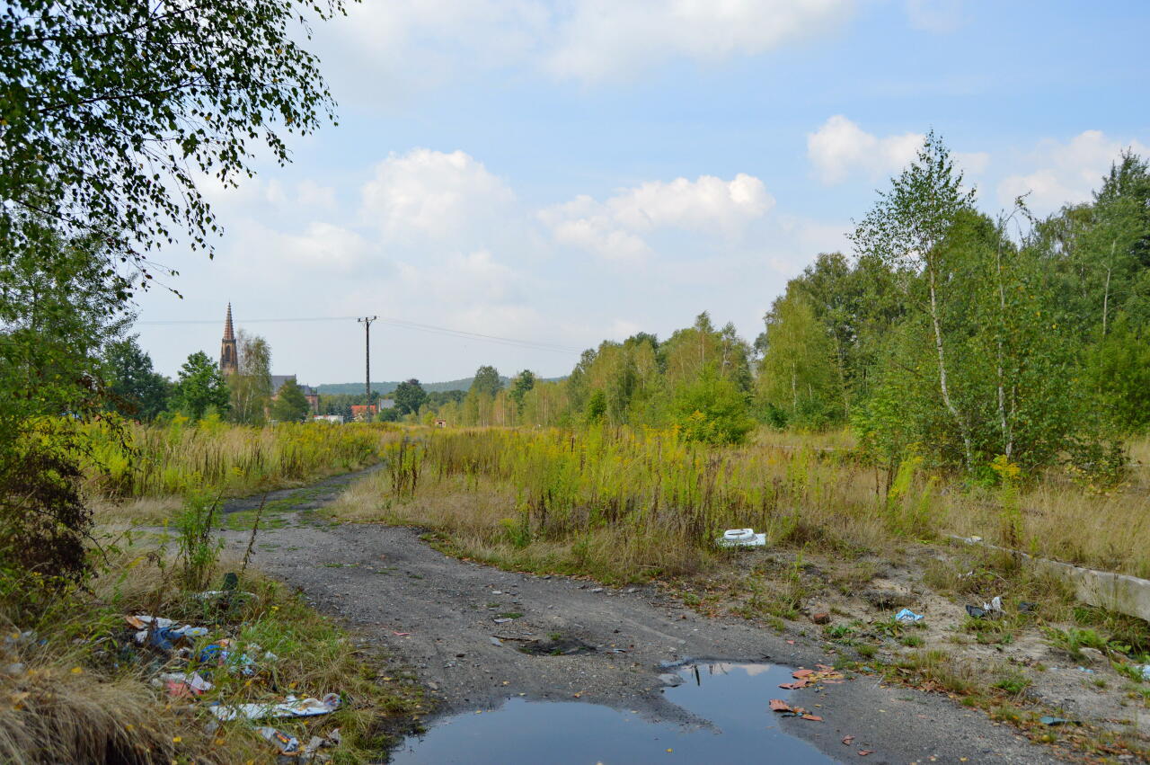 Ten zielony i rozkopany teren był kiedyś placem ładunkowym. Dziury powstały po wykopaniu kostki przez okolicznych mieszkańców.