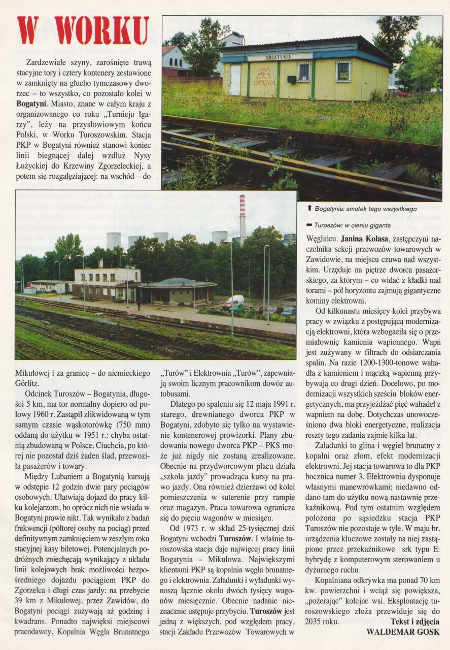 Dzięki za info. O zaniechaniu budowy (od podstaw) kolei do Turku było wiadomo już blisko rok wcześniej. Natomiast o Bogatyni dowiedziałem się teraz. Komentarze pod artykułem zamieszczonym w www.Zgorzelec.info mówią same za siebie.